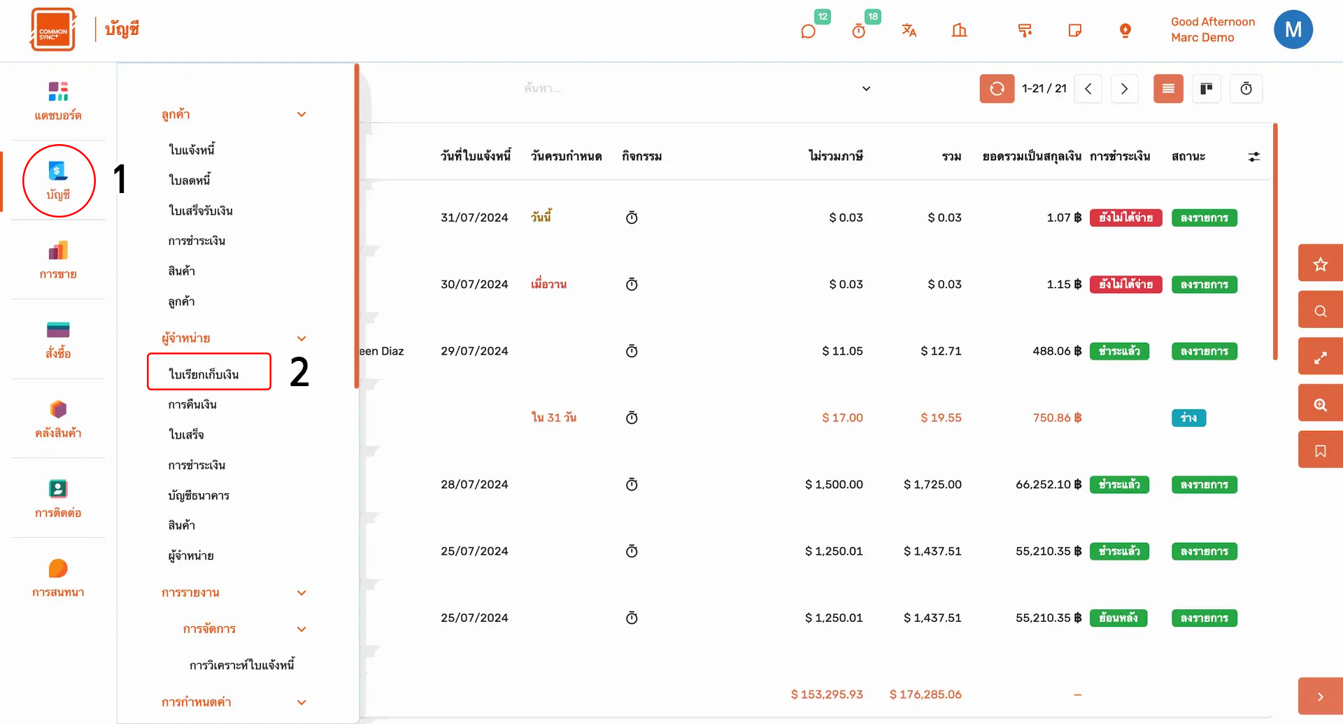 - กดปุ่ม "ยืนยัน" สถานะใบเรียกเก็บเงินจะเปลี่ยนจาก ร่าง > ลงรายการ