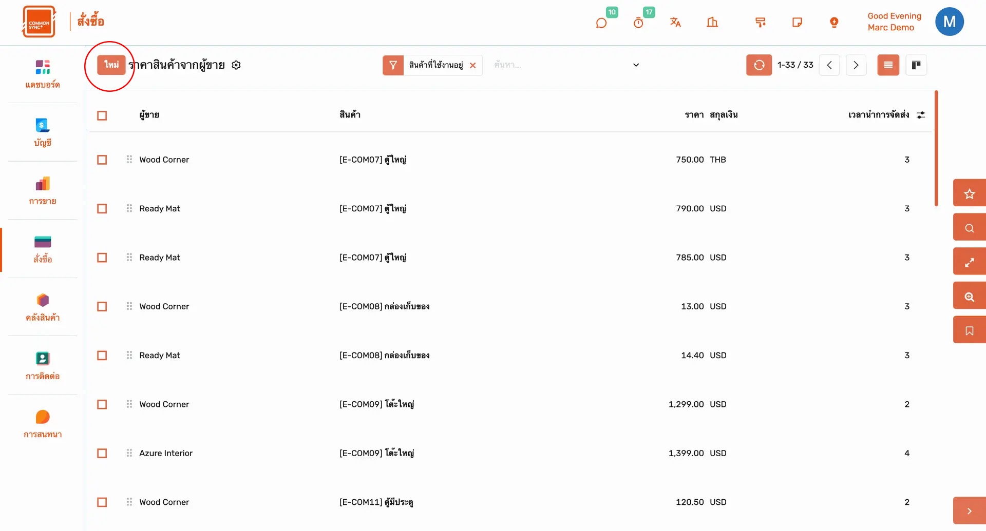 ตรวจสอบและสร้างรายการราคาสินค้าจากผู้ขาย (Vendor Pricelists)