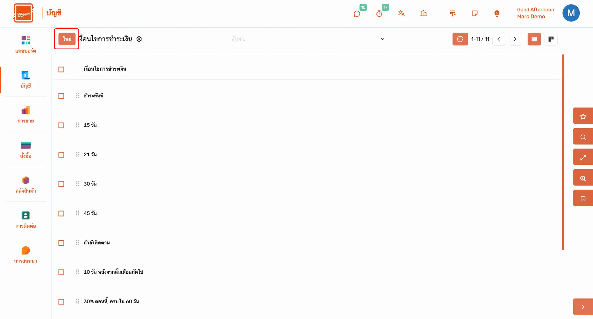 โมดูลบัญชี - เงื่อนไขการชำระเงิน (Payment Terms)